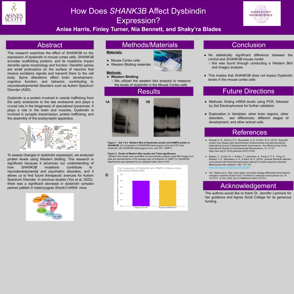 - Examined the effect of SHANK3B on the expression of the dysbindin protein in mouse cortical cells.